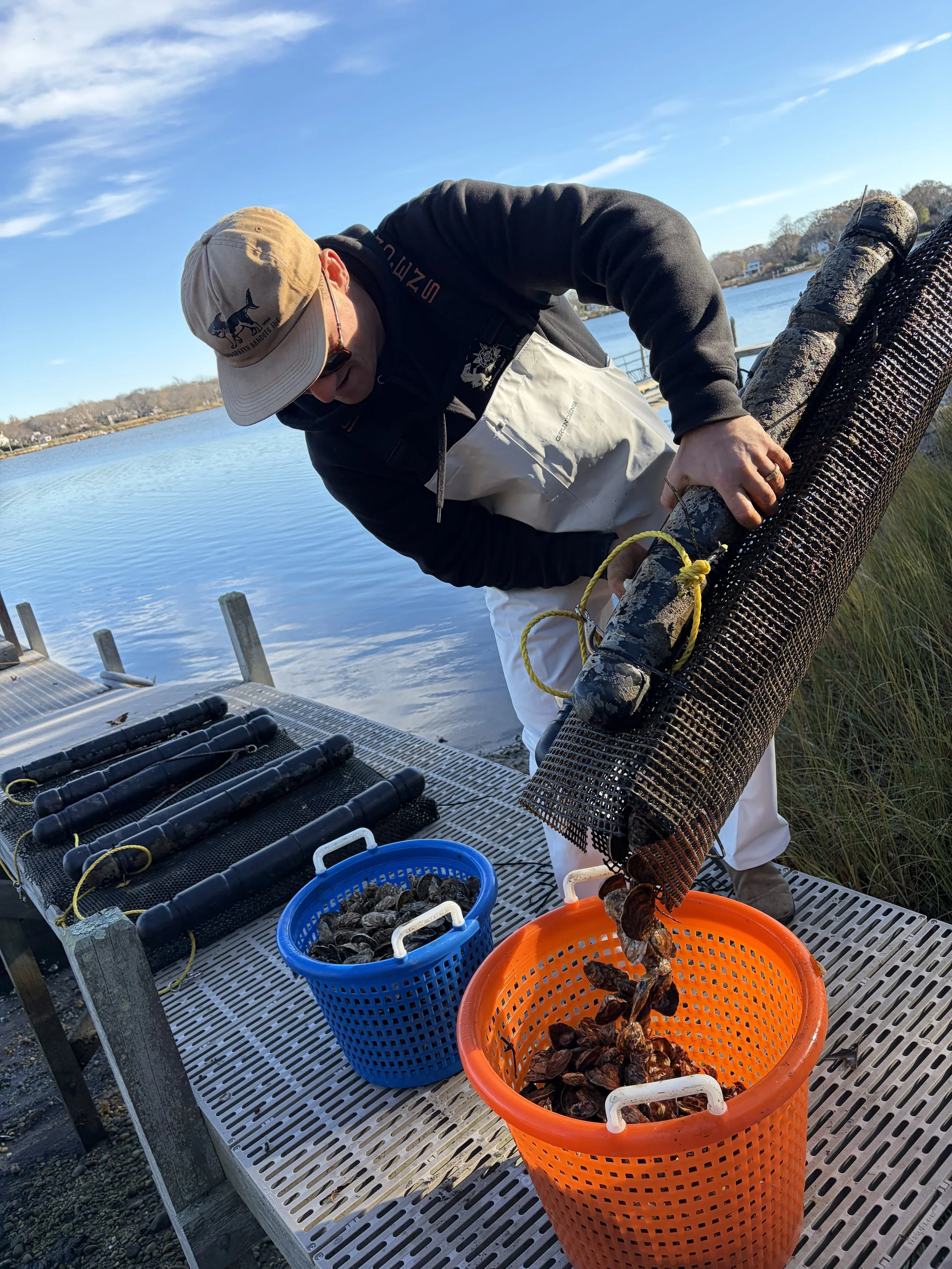 Annual cost includes 1,000 baby oysters (spat) from Cornell Cooperative Extension’s SPAT Program + Full Set Up & Maintenance Service provided by the Dawgpatch Crew.